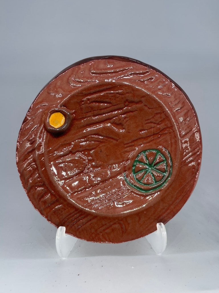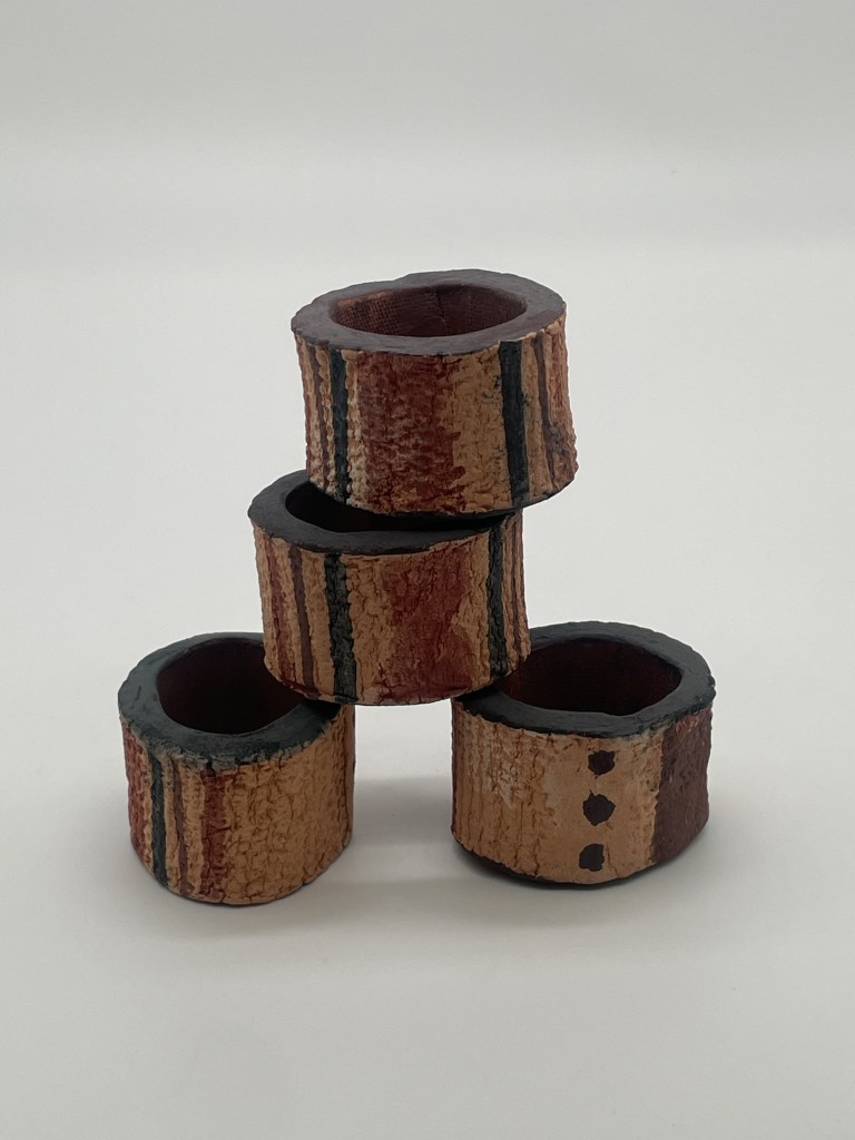 Inspired by things you’d dig up from the ruins of an old house: clay, wagon wheels, weeds, aged wood, nuts n’ bolts, oh my